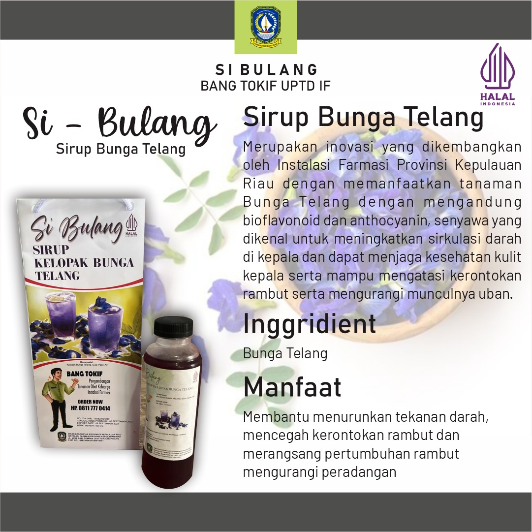“BANG TOKIF” (Pengembangan Tanaman Obat Keluarga di UPTD Instalasi Farmasi) digagas oleh Kelompok Gemilang yang terdiri dari Apoteker dan Asisten Apoteker di UPTD Instalasi Farmasi Dinas Kesehatan Provinsi Kepulauan Riau. Bertujuan untuk : Pengembangan potensi dan peningkatan kompetensi penggagas Tenaga Kesehatan ASN dan PPPK (Apoteker dan Asisten Apoteker) pada UPTD Instalasi Farmasi Dinas Kesehatan Provinsi Kepulauan Riau.