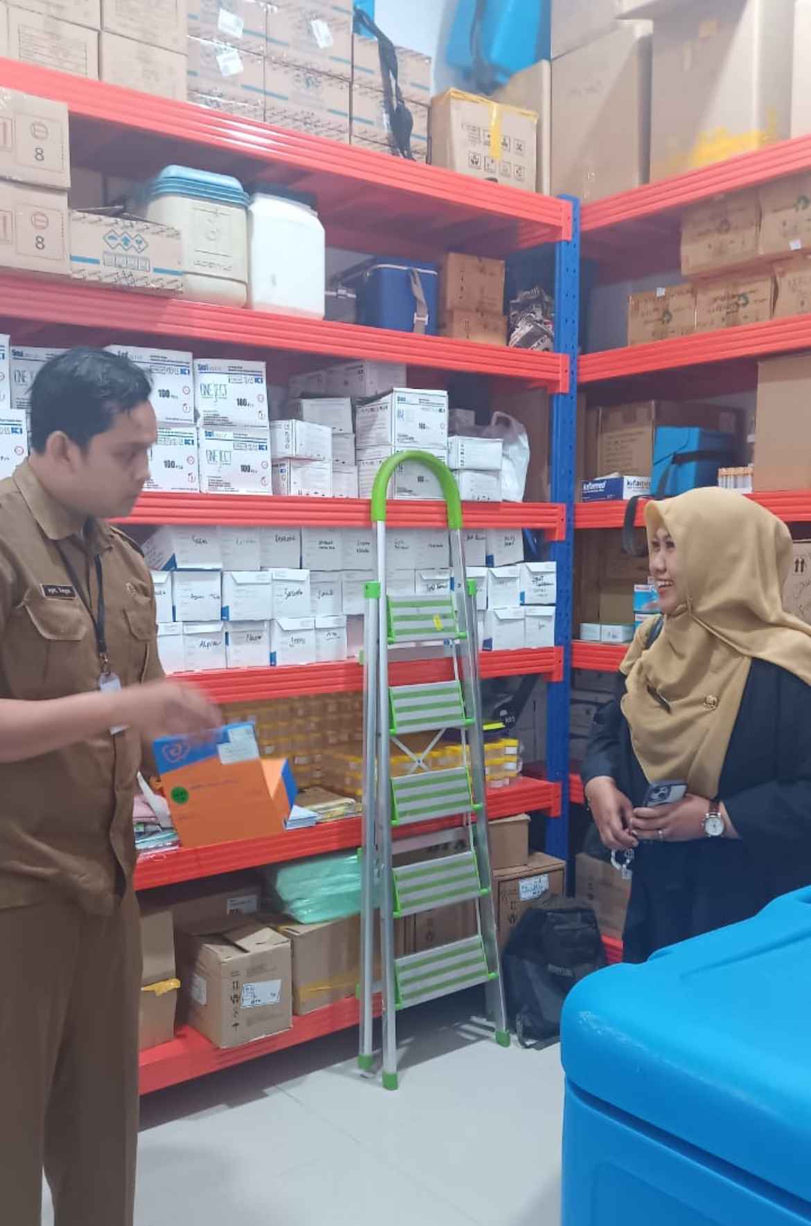 Kepala UPTD Instalasi Farmasi Dinas Kesehatan Provinsi Kepulauan Riau, Indri Ayu Ningsih, M. Farm, Apt beserta Penata Informasi dan Data, Sovi Rahmawati melakukan kegiatan Monitoring dan Evaluasi Pengelolaan Produk Rantai Dingin di Puskesmas Wilayah Kerja Kota Batam, yang dilakukan pada 3 (tiga) Puskesmas di Kota Batam berikut :