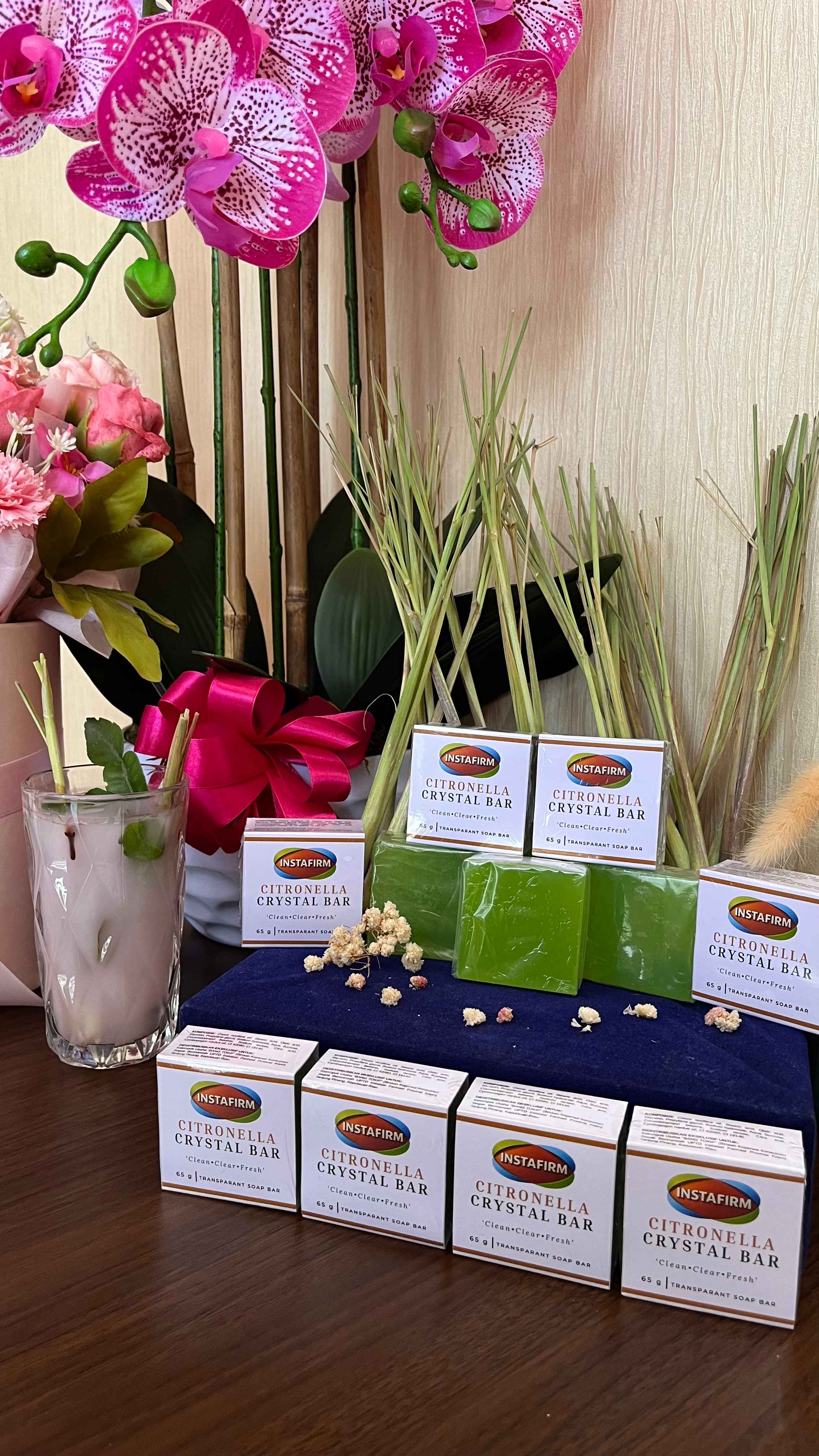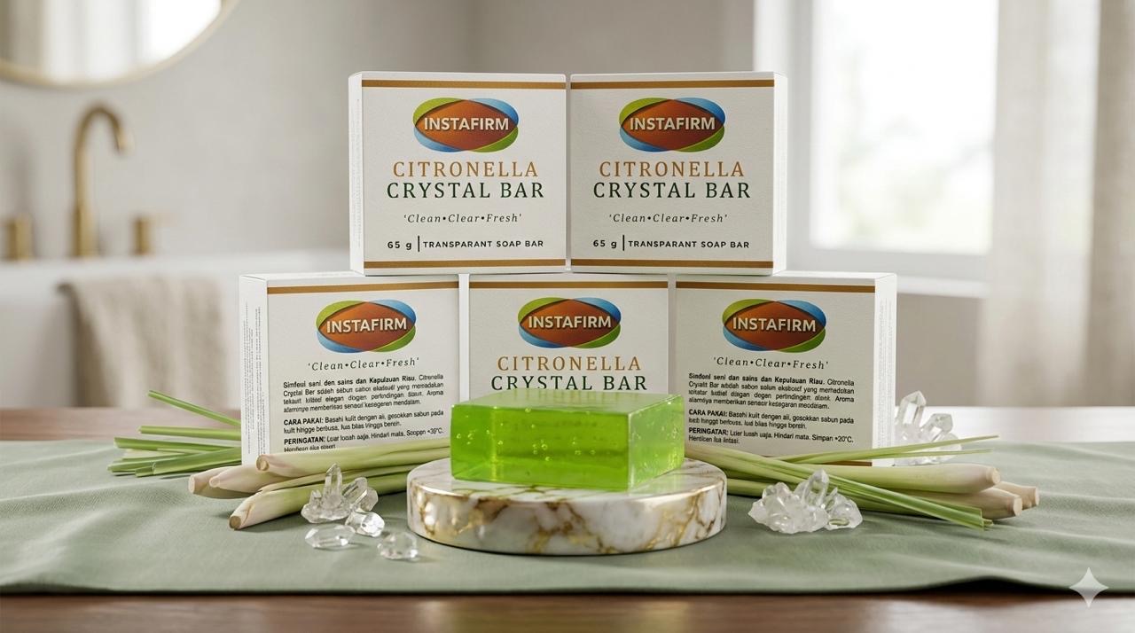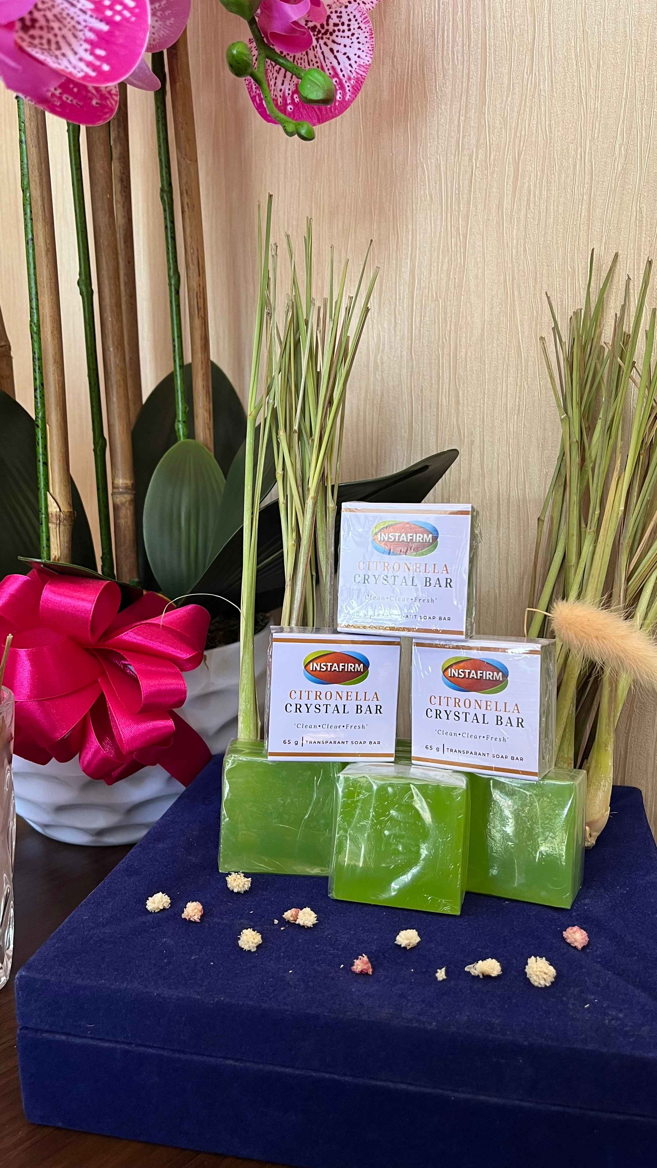 Sabun serai, Citronella Crystal Bar- Transparan Soap Bar - dengan sifat antiseptik dan antibakteri alaminya, secara turun temurun efektif menghilangkan bau badan, mengatasi gatal-gatal, serta menyegarkan kulit. Penggunaan rutin membantu mengurangi jerawat, mengusir nyamuk/serangga, mencerahkan kulit, dan memberikan efek aromaterapi yang merelaksasi dan membantu menghangatkan tubuh. Sabun ini cocok untuk berbagai jenis kulit.