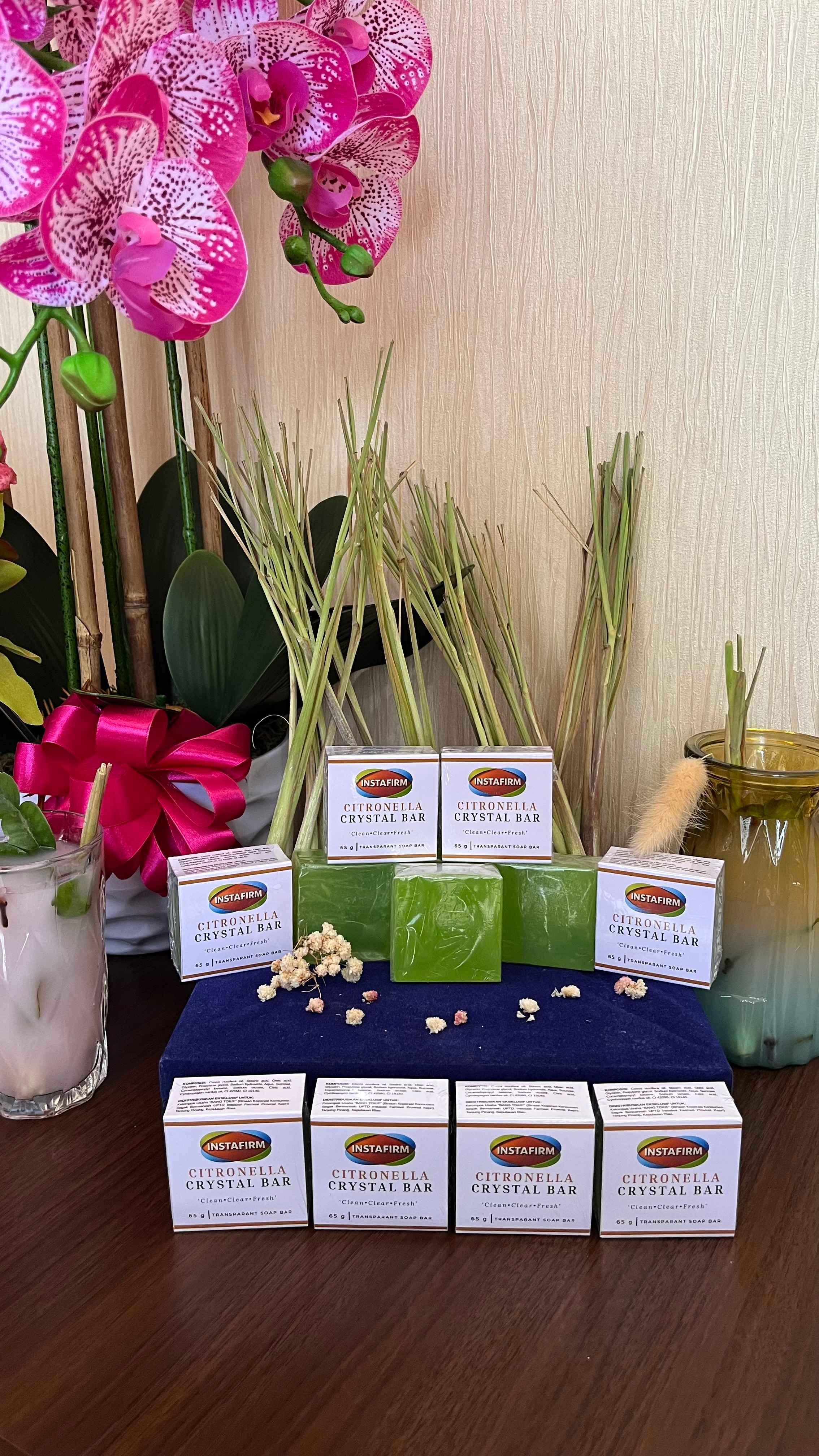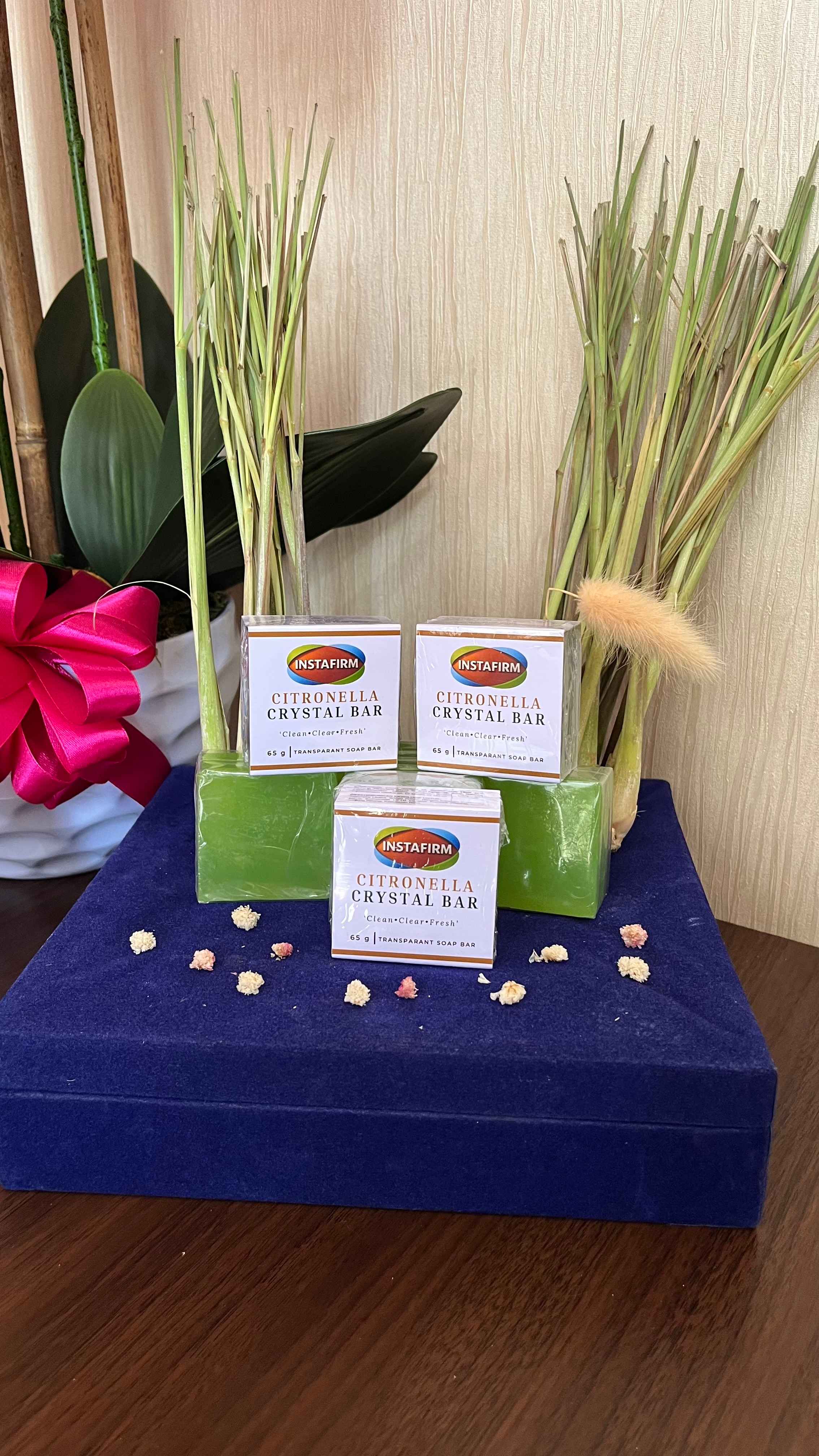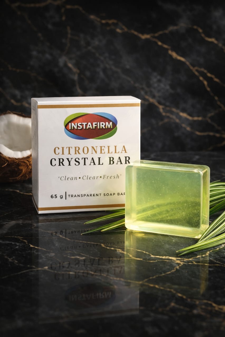 Sabun serai, Citronella Crystal Bar- Transparan Soap Bar - dengan sifat antiseptik dan antibakteri alaminya, secara turun temurun efektif menghilangkan bau badan, mengatasi gatal-gatal, serta menyegarkan kulit. Penggunaan rutin membantu mengurangi jerawat, mengusir nyamuk/serangga, mencerahkan kulit, dan memberikan efek aromaterapi yang merelaksasi dan membantu menghangatkan tubuh. Sabun ini cocok untuk berbagai jenis kulit.