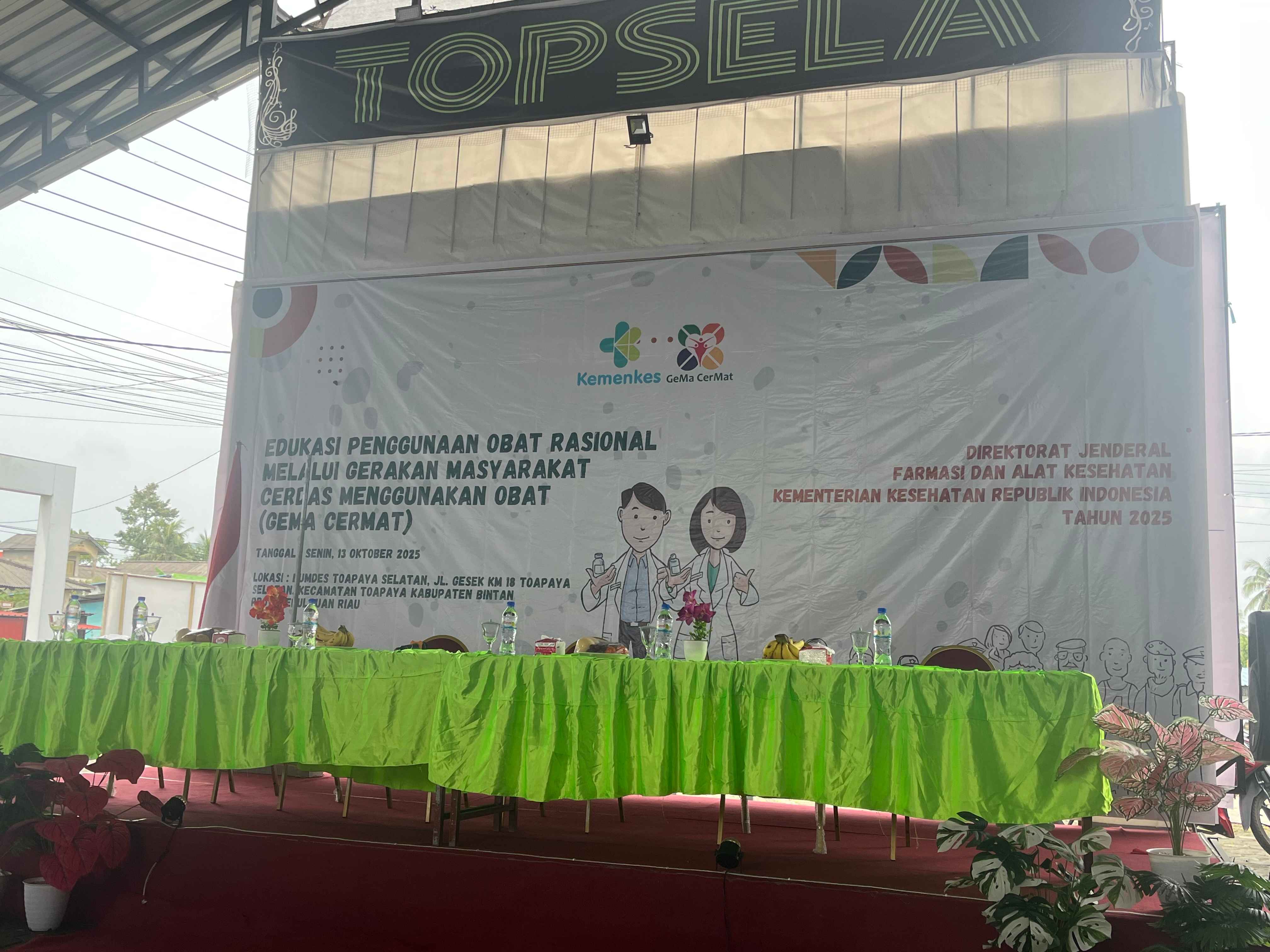 Anggota Komisi IX DPR RI Bapak Zainul Munasichin, MA berinteraksi dengan masyarakat di Provinsi Kepulauan Riau khususnya di Kabupaten Bintan, bersama Ibu Dini Kusumawati, S. Si, Apt; Virda Septina, S. Farm, Apt; Mulyawan Arisyuada, S. Farm dan Kukuh Widodo dari Direktorat Pelayanan dan Pengelolaan Farmasi Kementerian Kesehatan Republik Indonesia melaksanakan Kegiatan “Sosialisasi Gerakan Masyarakat Cerdas Menggunakan Obat (Gema Cermat) di Provinsi Kepulauan Riau khususnya di Kabupaten Bintan Tahun 2025”. Kegiatan dilakukan di Bumdes Tuapaya Kabupaten Bintan yang dihadiri oleh ratusan masyarakat yang antusias dalam kegiatan tersebut.
