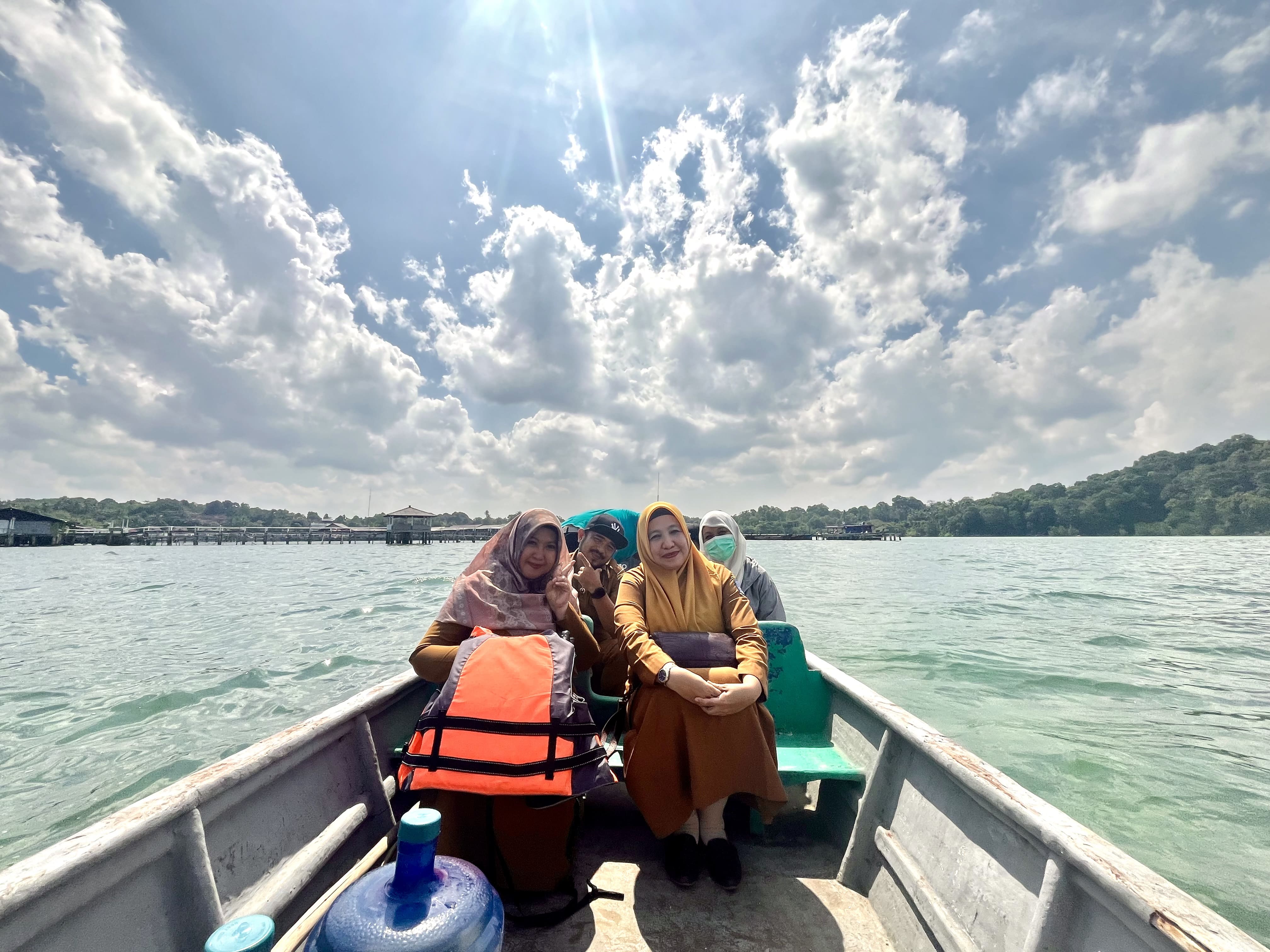 Kepala Sekretariat Dinas Kesehatan Provinsi Kepulauan Riau, dr. Yosei Susanti, M.A.P bersama Kepala UPTD Instalasi Farmasi Dinas Kesehatan Provinsi Kepulauan Riau, Indri Ayu Ningsih, M. Farm, Apt bersama Tim Dinas Kesehatan Provinsi Kepulauan Riau Ira Falza, Amd. Kep selaku Pengelola Layanan Kesehatan, dan Sovi Rahmawati, AMD meninjau Kampung Teripang pada Selasa 28 Oktober 2025.