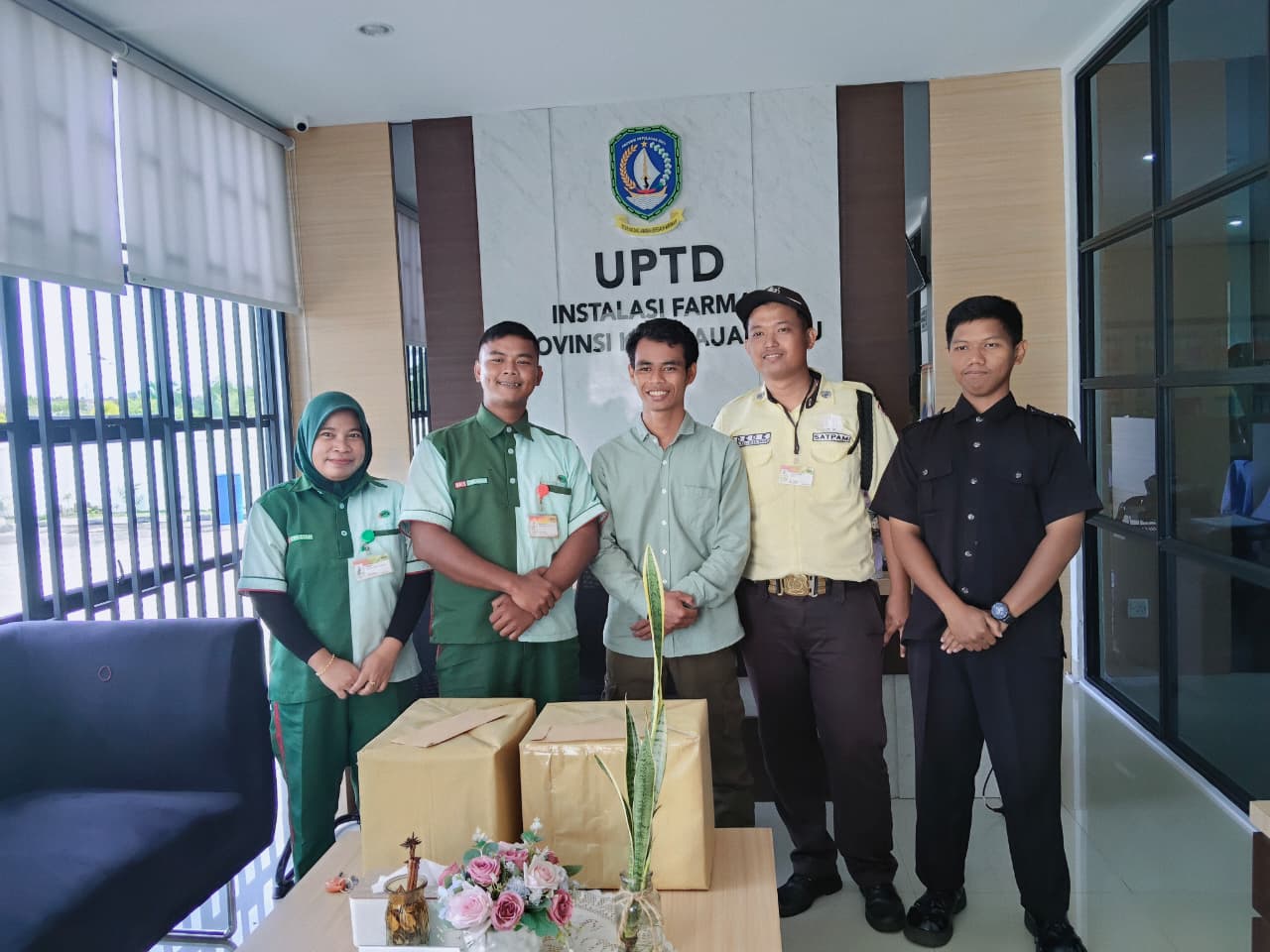 Keluarga besar UPTD Instalasi Farmasi Dinas Kesehatan Provinsi Kepulauan Riau menyelenggarakan momen perpisahan sebagai bentuk penghargaan dan apresiasi kepada Mulyono selaku Cleaning Service dan Riyo selaku Security atas dedikasi serta pengabdian yang telah diberikan selama bertugas.