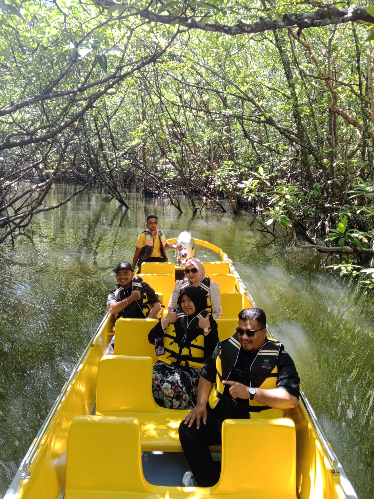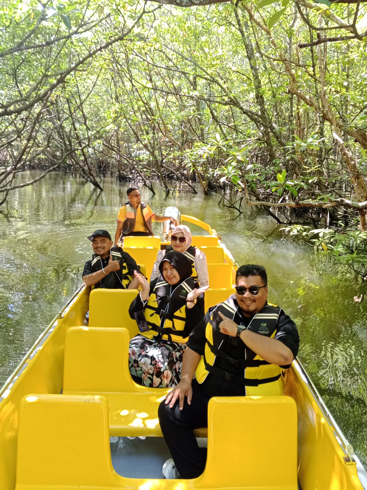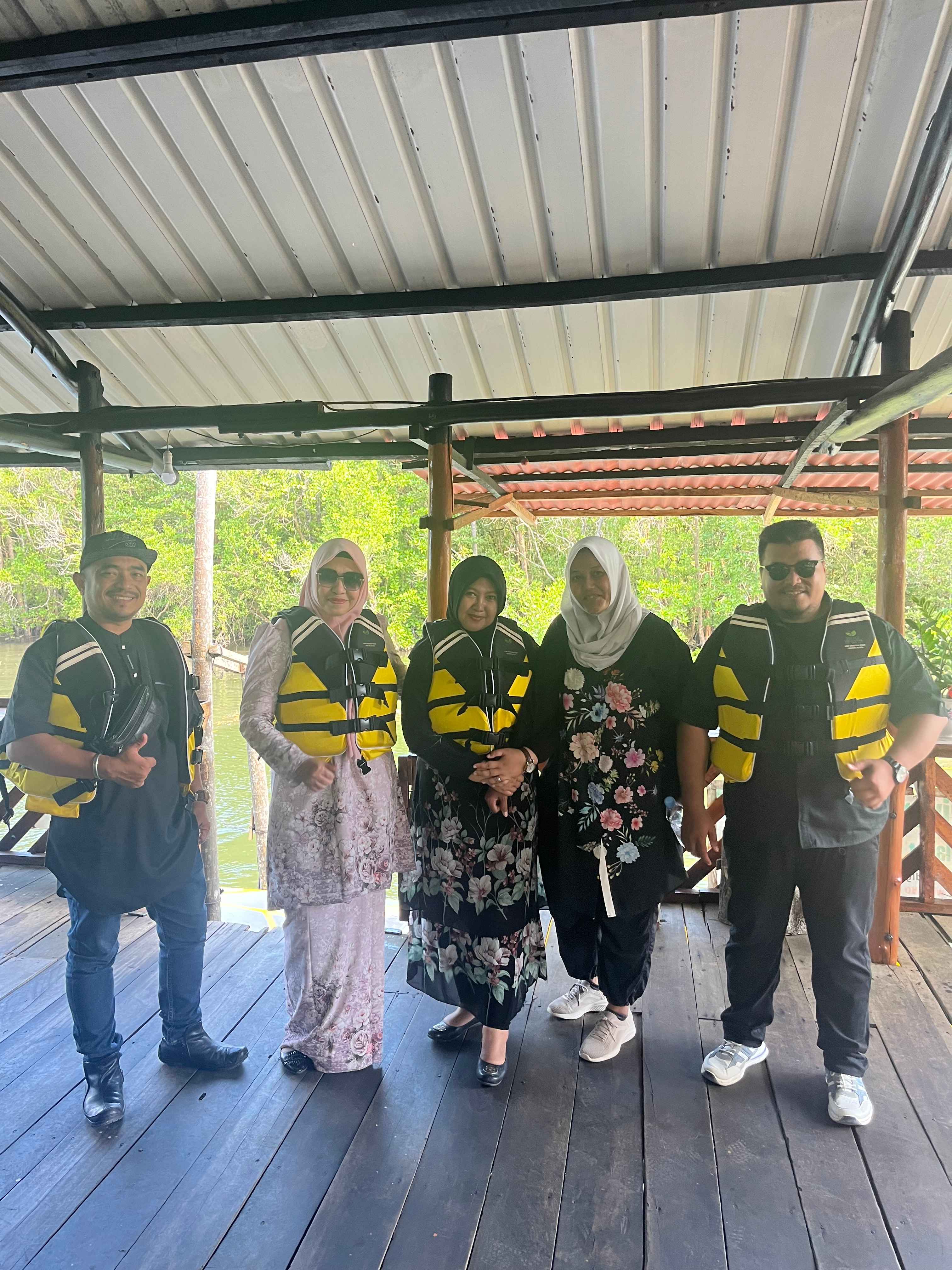 Kepala Sekretariat Dinas Kesehatan Provinsi Kepulauan Riau, dr. Yosei Susanti, M.A.P bersama DR. Putri Rahmawati, MKM, Kepala Bidang Sumber Daya Manusia Kesehatan Dinas Kesehatan Provinsi Kepulauan Riau, Indri Ayu Ningsih, M. Farm, Apt - Kepala UPTD Instalasi Farmasi Dinas Kesehatan Provinsi Kepulauan Riau, Ira Falza, AMK - Pengatur Layanan Kesehatan dan Pengelola Program Zoonosis Dinas Kesehatan Provinsi Kepulauan Riau dan Sovi Rahmawati, AMd - Pengelola Informasi dan Data UPTD Instalasi Farmasi Dinas Kesehatan Provinsi Kepulauan Riau berkunjung ke Bintan Green Mangrove pada Jumat 5 Desember 2025 terkait kebutuhan Anti Venom / Bisa Ular di kawasan wisata alam.
