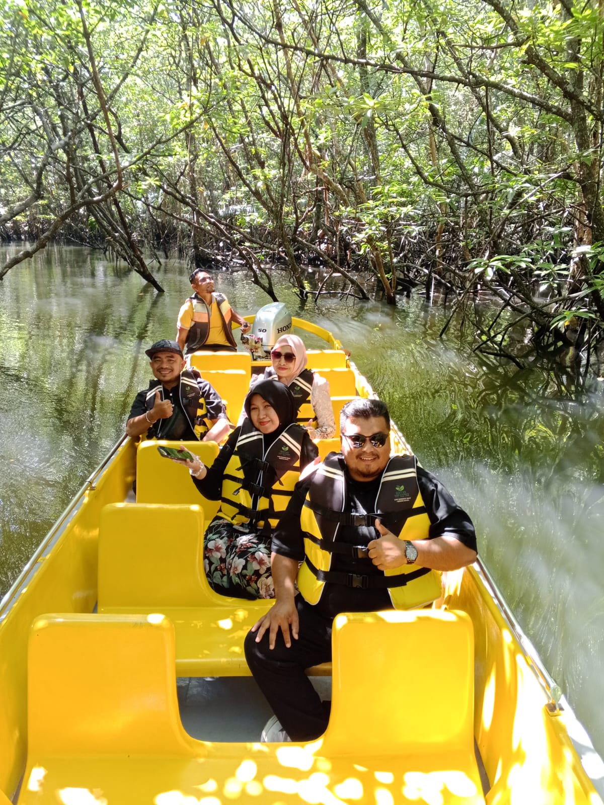Pemilik Bintan Green Mangrove, Khelly dan Sabri UMKM Binaan UPTD Instalasi Farmasi Dinas Kesehatan Provinsi Kepulauan mendampingi kunjungan tersebut. Khelly mengatakan bahwa di area wisata mangrove ini terdapat satwa liar yang hidup berdampingan serta hutan magrove yang dilindungi.