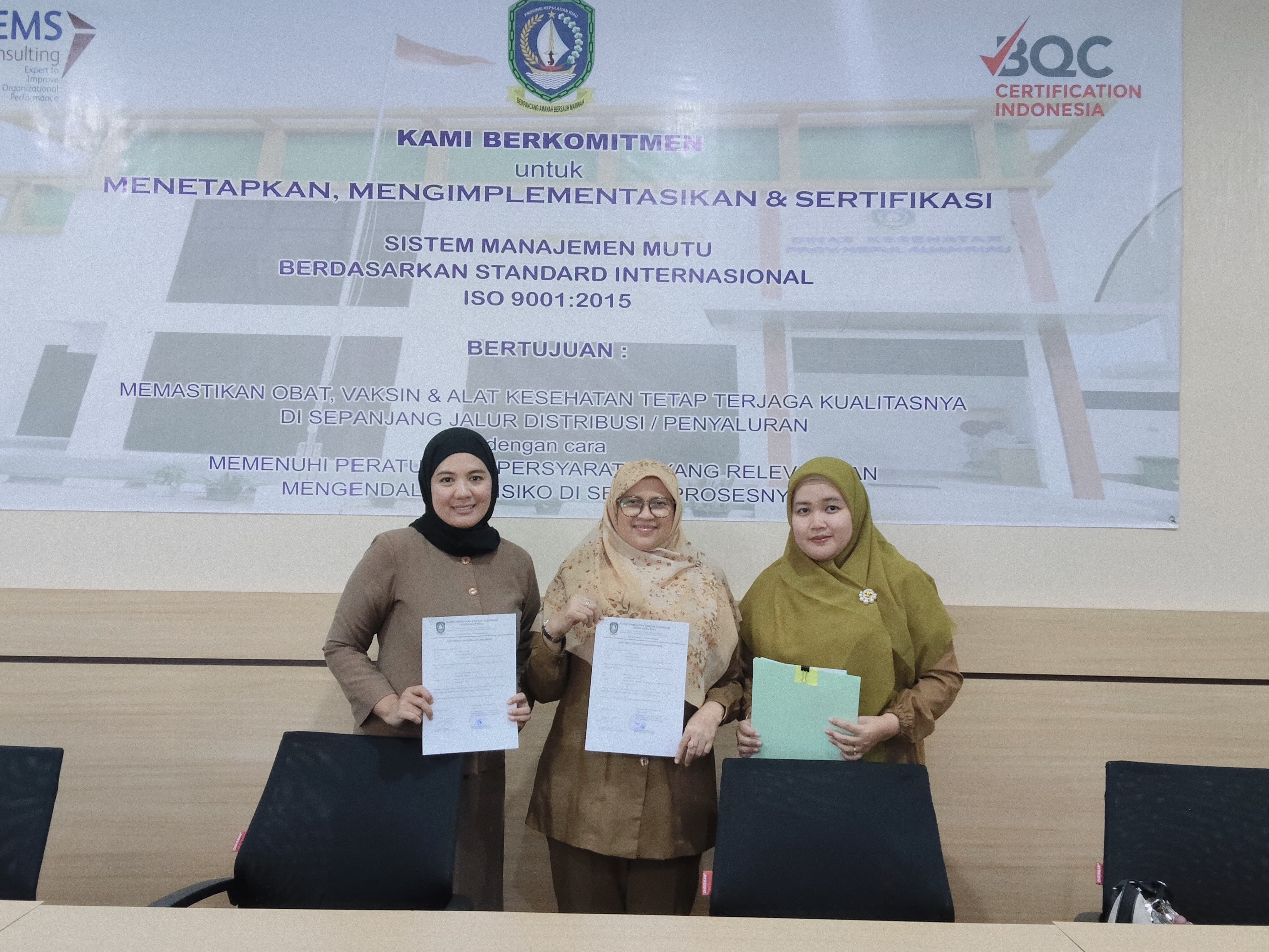 Kegiatan penandatanganan ini menjadi bukti nyata komitmen UPTD Instalasi Farmasi Dinas Kesehatan Provinsi Kepulauan Riau dalam mendukung penerapan sistem manajemen mutu pelayanan kesehatan, serta memastikan seluruh proses pengelolaan logistik dan limbah medis dilakukan dengan prinsip keselamatan, kepatuhan, dan transparansi.